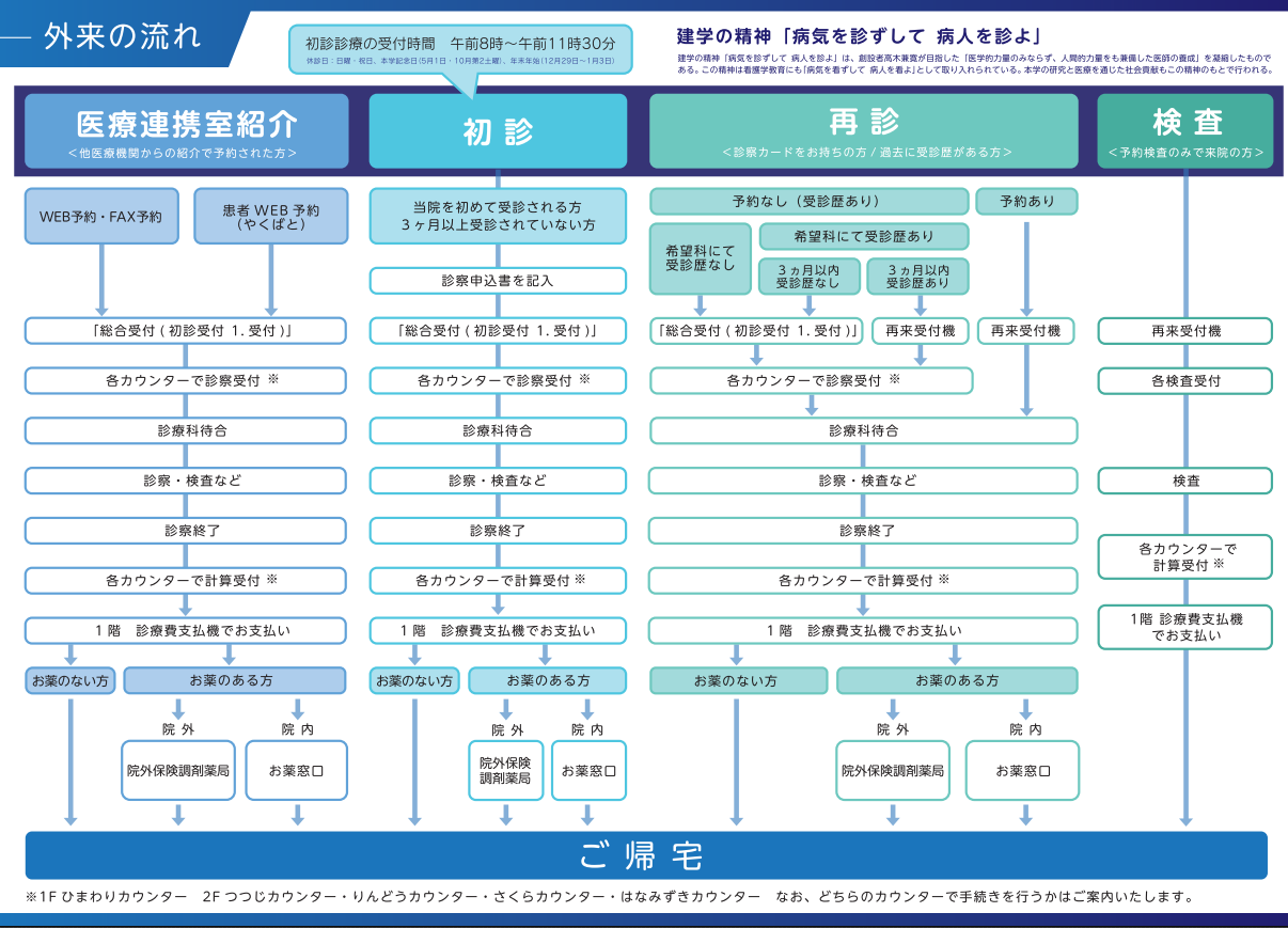 外来カウンター*へお越しください。