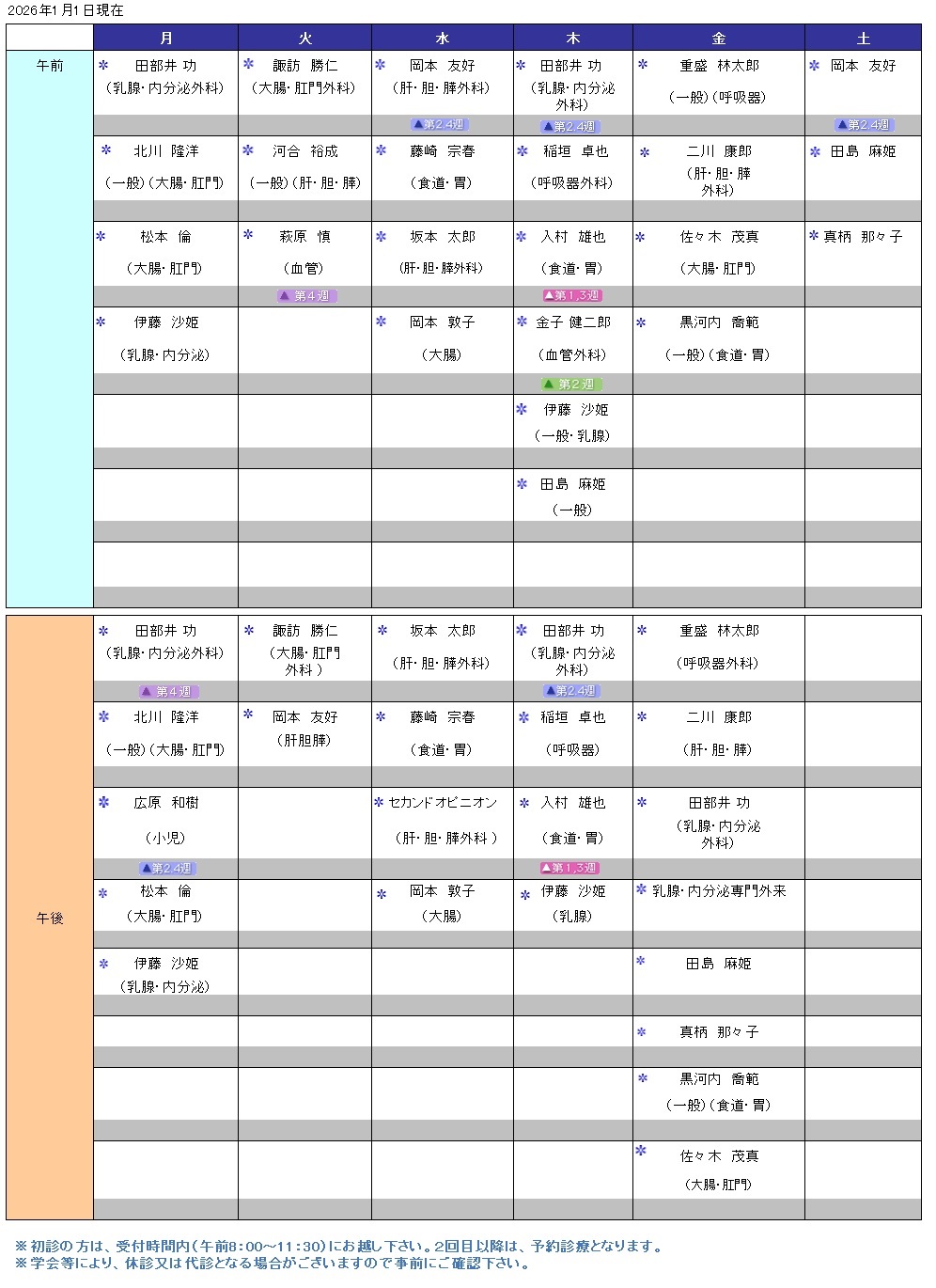 外科 外来担当医スケジュール