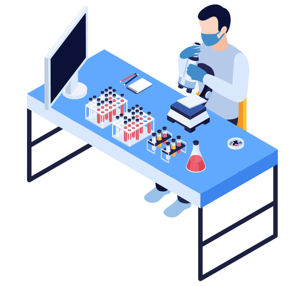 2:非臨床試験動物を対象に「くすり」の候補の有効性と安全性を調べます。