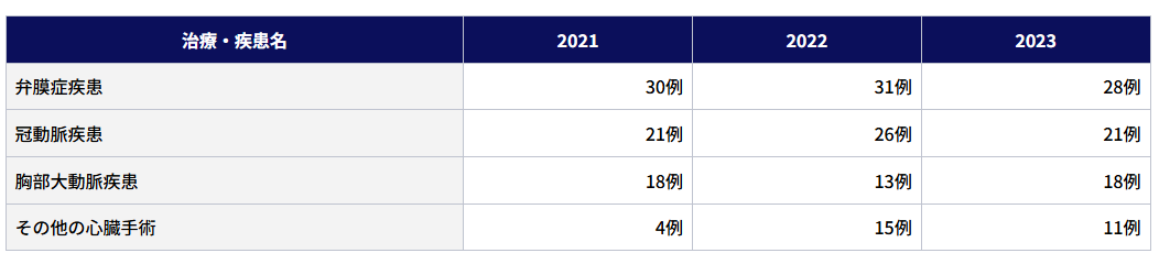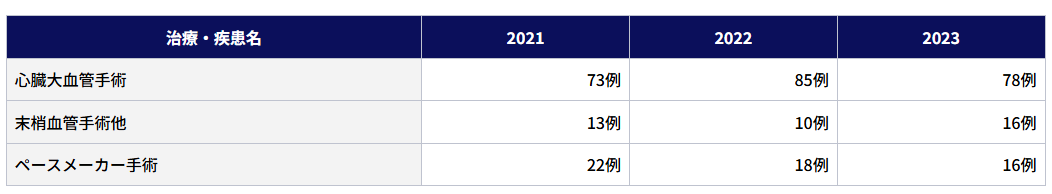 成人心臓、大血管手術(冠動脈疾患とそれに伴う合併症に対する疾患、弁膜症疾患、大動脈疾患、心臓腫瘍、不整脈疾患その他)、ペースメーカー手術