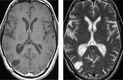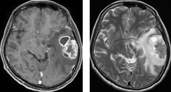 腎臓癌による右側頭葉の転移性小脳腫瘍に対して開頭腫瘍摘出術を施行し全摘しました。術後ガンマナイフを併用しました。術前に視野障害を自覚しておりましたが、術後改善しました。腫瘍の全摘に加え、機能も回復しました。