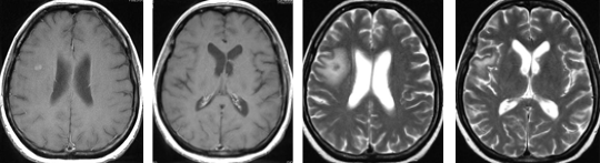 卵巣癌による右前頭葉を中心に多発転移性脳腫瘍に対して放射線治療単独(全脳照射)のみで腫瘍が著明に縮小しました。その後再発なく経過しています。