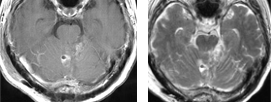 乳癌による転移性小脳腫瘍に対して開頭腫瘍摘出術を施行しました。ダンベル状の多発病変でしたが、一期的に摘出しました。術後放射線治療を行いました。