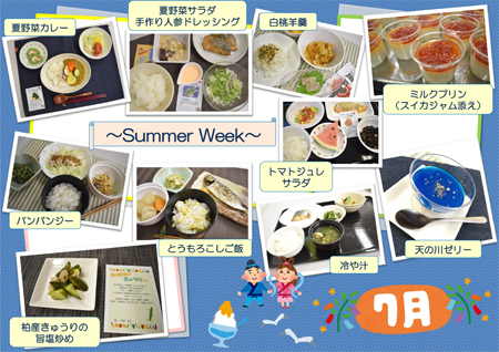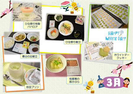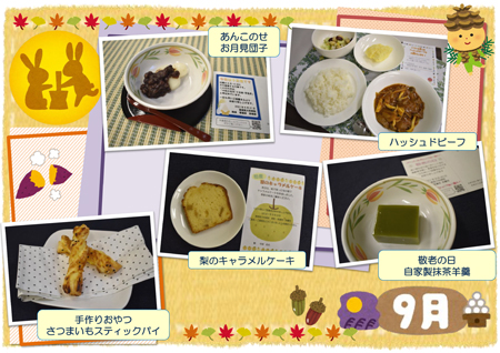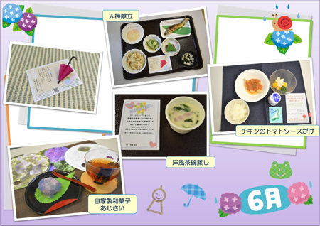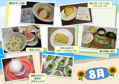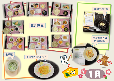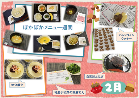 季節感のある食材を使った行事食や地元柏市で育った野菜や果物を使用した「地産地消」への取り組み、手作りジャム、おやつ、疾患に配慮した料理など趣向を凝らした料理を提供しています。