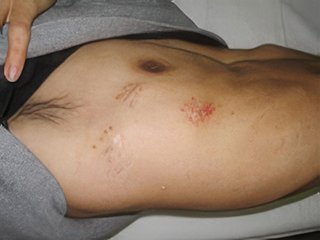 胸腔鏡下手術の利点は手術の傷が従来の方法と較べると小さく、手術の後の痛みが少なく、早期に退院が可能であることです。