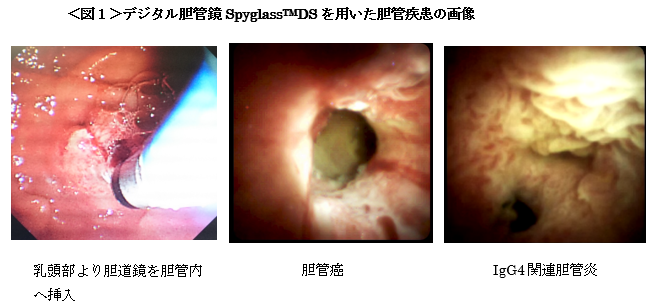 胆膵内視鏡は当科が最も力を入れている分野であり、胆道鏡を用いた直接生検による胆膵疾患精査(図1)や従来は困難であった術後のERCPにもダブルバルーン小腸鏡を用いて積極的に施行しています。外科、消化器・肝臓内科との緊密な連携のもと合同チームで診療にあたっており、内視鏡学会認定指導施設、胆道学会認定指導施設として常に高いレベルの診療が行えるような診療体制を整えています。