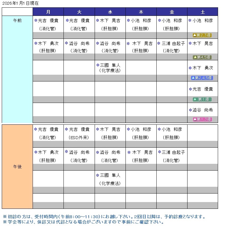 消化器・肝臓内科 外来担当医スケジュール