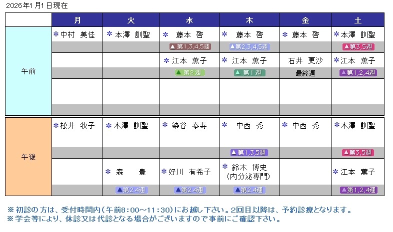 外来担当医スケジュール