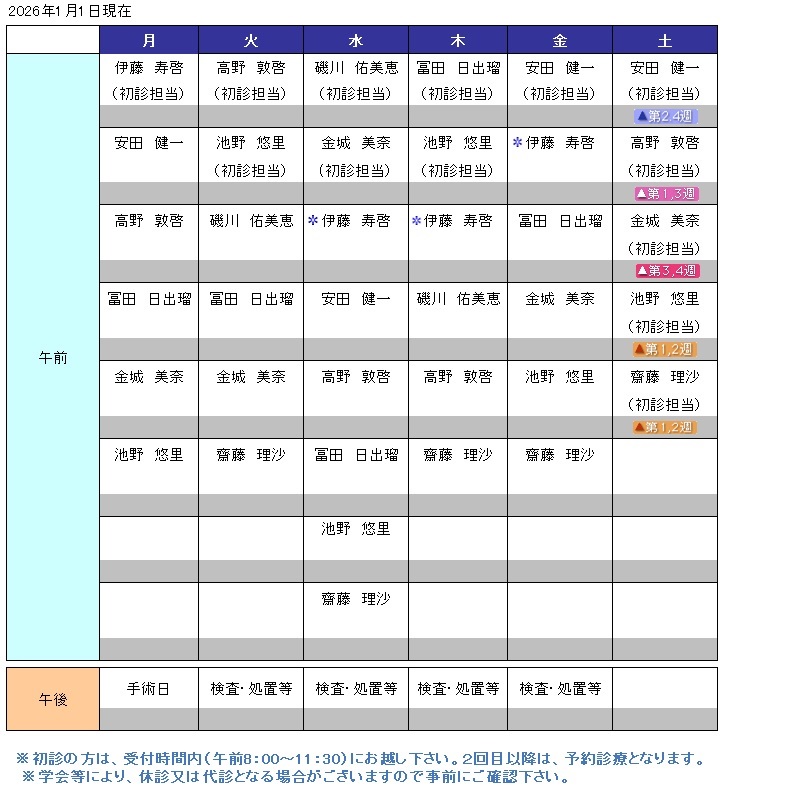 外来担当医スケジュール