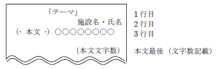 • 書 式:ワード使用、A4用紙1枚(表紙不要)、800~1000字程度(本文のみ)