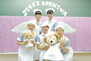 3室ある看護実習室にはいろいろなモデル人形がありますので、先輩の説明を聞いて実際に触れて体験していただきました。
