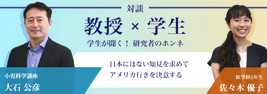 対談 教授 x 学生 学生が聞く!研究者のホンネ ホーム東京慈恵会医科大学TOP医学部医学科医学部医学科 学生生活対談 教授 x 学生 学生が聞く!研究者のホンネ [氏名肩書はインタビュー当時] 第21回 小児科学講座 大石 公彦 [2025年 8月 20日] 第20回 心臓外科学講座 國原 孝 [2025年 6月 27日] 第19回 薬理学講座 青木友浩 [2024年 12月 6日] 第18回 救急災害医学講座 武田 聡 [2024年 11月 20日] 第17回 内視鏡医学講座 炭山 和毅 [2024年 6月 27日] 第16回 細胞生理学講座 南沢 享 [2023年 12月 4日] 第15回 内科学講座 循環器内科 吉村 道博 [2023年 11月 13日] 第14回 内科学講座 脳神経内科 井口 保之 [2023年 6月 23日] 第13回 内科学講座 呼吸器内科 桑野 和善 [2022年 12月 13日] 第12回 外科学講座 血管外科 大木 隆生 [2022年 7月 12日] 第11回 環境保健医学講座 須賀 万智 [2022年 4月 11日] 第10回 細菌学講座 金城 雄樹 [2021年 11月 5日] 第9回 脳神経外科学講座 村山 雄一 [2021年 6月 30日] 第8回 整形外科学講座 斎藤 充 [2021年 2月 5日] 第7回 解剖学講座 岡部 正隆 [2021年 1月 18日] 第6回 内科学講座 腎臓・高血圧内科 横尾 隆 [2020年 11月 18日] 第5回 精神医学講座 繁田 雅弘 [2020年 7月 4日] 第4回 熱帯医学講座 嘉糠 洋陸 [2020年 2月 25日] 第3回 リハビリテーション医学講座 安保 雅博 [2019年 12月 18日] 第2回 臨床検査医学講座 松浦 知和 [2019年 7月 29日] 第1回 ウイルス学講座 近藤 一博 [2019年 2月 8日]
